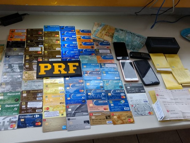 Ainda de acordo com a PRF, na abordagem os policiais perceberam que o condutor do veículo jogou uma bolsa para fora do carro. Na ocasião os agentes revistaram a bolsa e encontraram vários cartões de crédito em nome de outras pessoas. Nas bagagens e carteiras dos outros dois ocupantes do veículo também foram encontrados 72 cartões.